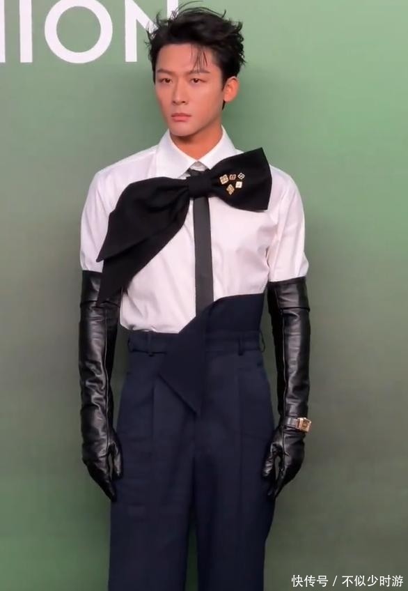 正处于人气上升期的张晚意也没逃过造型魔咒。胸前挂着一个硕大的歪斜蝴蝶结,双手戴着超过肘部的黑色皮质手套,活脱脱一副刚刷完墙的装修工人既视感。