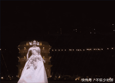 上半身采用轻透薄纱材质,若隐若现间增添一丝柔美气息,腰间的白色立体花朵成为点睛之笔。配合她天生丽质的五官,美得令人移不开视线。